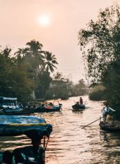 Early afternoon departure by road toward Can Tho, crossing the rural and riverine landscapes of Vietnam in the Mekong Delta, characterized by rice fields, canals and agricultural villages. Arrival in Can Tho, capital of the delta, where daily life follows the rhythm of the river.