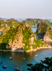 Travel to the world-famous Halong Bay. Board a traditional wooden junk for a cruise through this UNESCO World Heritage site. A cruise is the ultimate way to see Northern Vietnam at a relaxed pace. Enjoy a seafood lunch while sailing past iconic limestone pillars. Stop at Cap La island for swimming and relaxation, providing wonderful shared experiences.