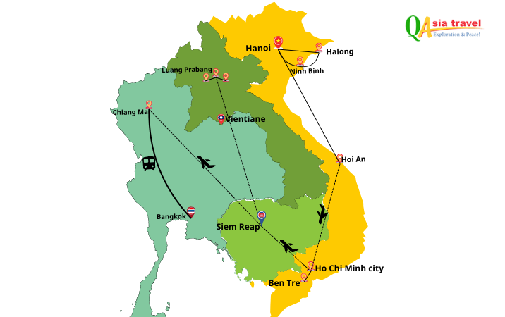 From Hanoi to Lan Ha Bay, from the imperial cities of central Vietnam to the Mekong Delta, then onward to Phnom Penh, Siem Reap, Luang Prabang, Chiang Mai and Bangkok, the route has been carefully crafted to ensure a smooth pace without rushing. Each destination has been selected to provide meaningful cultural encounters, scenic diversity and optimal comfort throughout the journey.